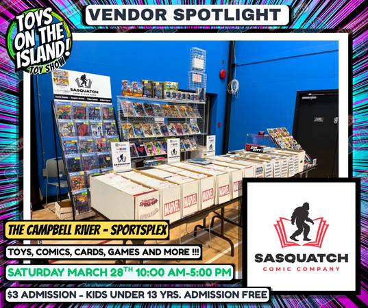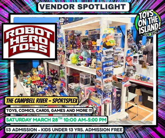 #toysontheisland #campbellriver #campbellriverbc #vancouverisland #comics #toys #pokèmoncards #videogames #vendors #gijoe #transformers #VINTAGETOYS #ACTIONFIGURES #LEGO #MAGICCARDS #BOARDGAMES #DND #SPORTSCARDS #FUNKOPOPS #HOTWHEELS #DOLLS #BARBIE #ARTISTS #vendors #fun #March28t #campbellriverSPORTSPLEX #foodtrucks #radientcoasttattoo #CampbellRiverHospitalAuxiliary #fuelupcafe #quinsamcommunicationsgroup #campbellriver #campbellriverbc
