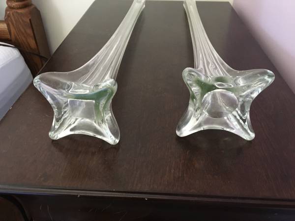 Both vases for $10 Slim and Tall Eiffel Tower Vases Both in great shape Top is square - 1 1/4" x 1 1/4" x 1/8" thick square opening 24" tall Base is 3 3/4" x 3 3/4" Slim and Tall Eiffel Tower flower...